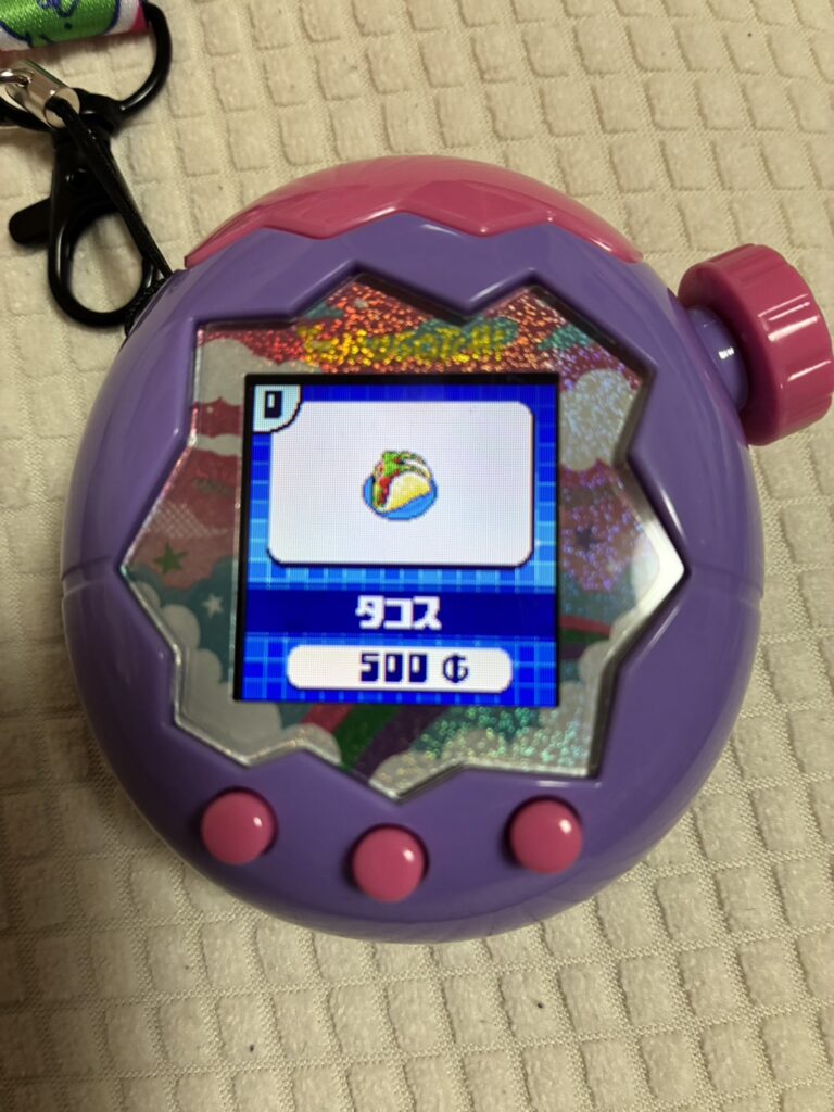 そして、表記されているお金(ゴッチ)を支払うと、たまごっちに食べさせてあげることができます。