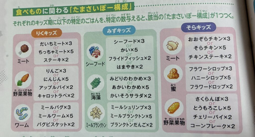 どのフィールドで育てるか、何を食べさせるか、